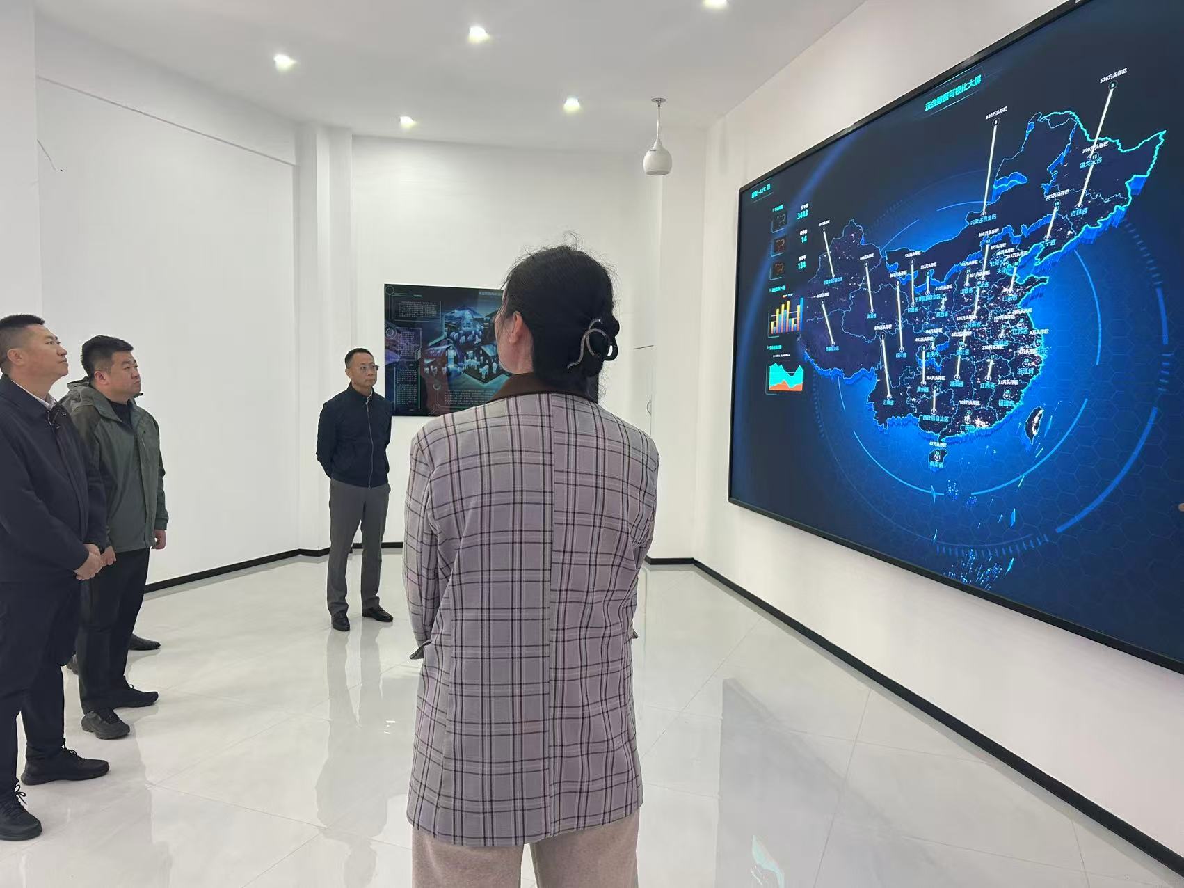 王主席一行实地参观了企业文化墙、数字大屏展示区,在李主任的细致讲解下,详细了解公司的发展历程及市场布局。